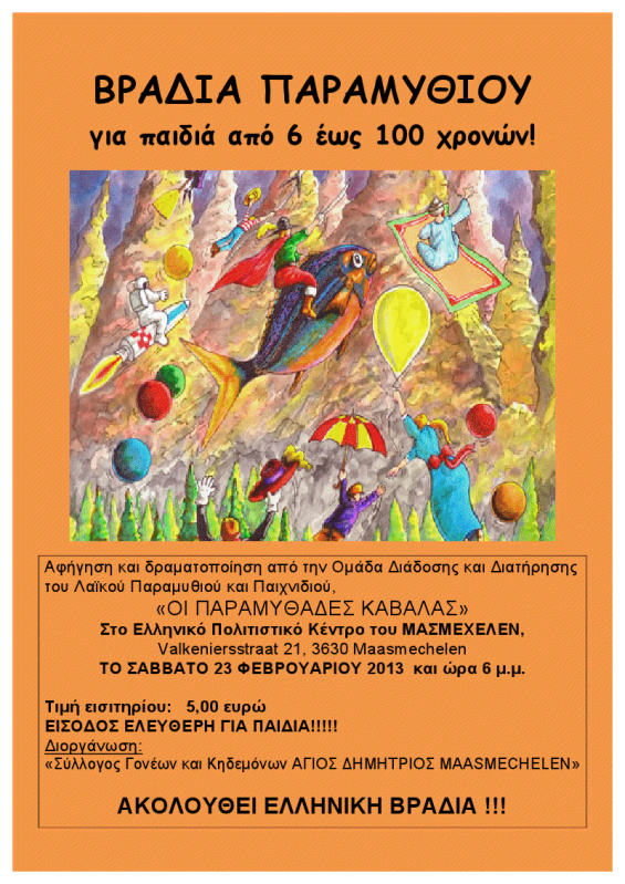 Η αφίσα της εκδήλωσης στο πολιτιστικό κέντρο του Μαασμέχελεν