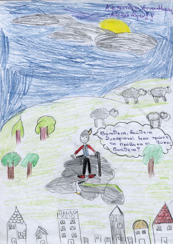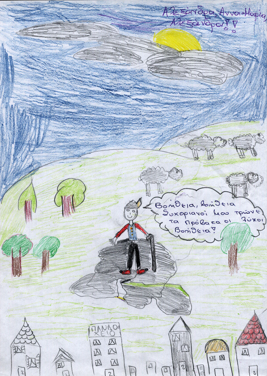 Η Αλεξάνδρα, η Άννα-Μαρία και η Αλεξάνδρα, συνεργάστηκαν και ζωγράφισαν μαζί εμπνευσμένες από τον μύθο «Ο ψεύτης βοσκός».