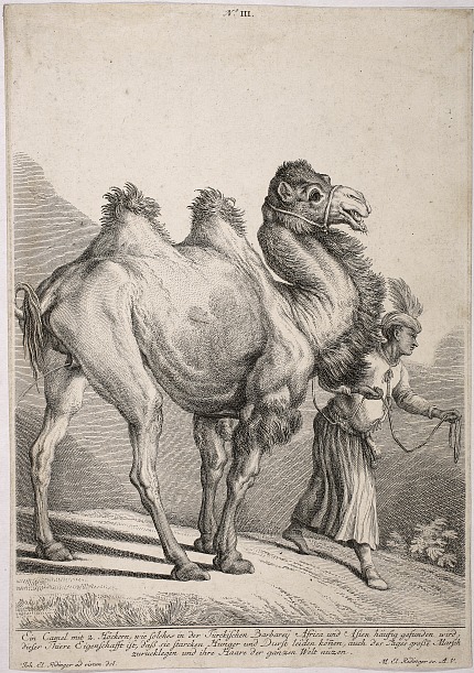Χαρακτικό των Martin και Johann Elias Ridinger με τίτλο «Τούρκος οδηγεί μία καμήλα»