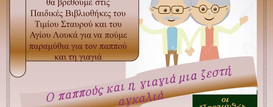 Τιμώντας, λοιπόν, τα λατρεμένα πρόσωπα του παππού και της γιαγιάς θα βρεθούμε στις Παιδικές Βιβλιοθήκες του Τιμίου Σταυρού και του Αγίου Λουκά την Τετάρτη 21 Οκτωβρίου 2015 στις 18:00-20:00.
