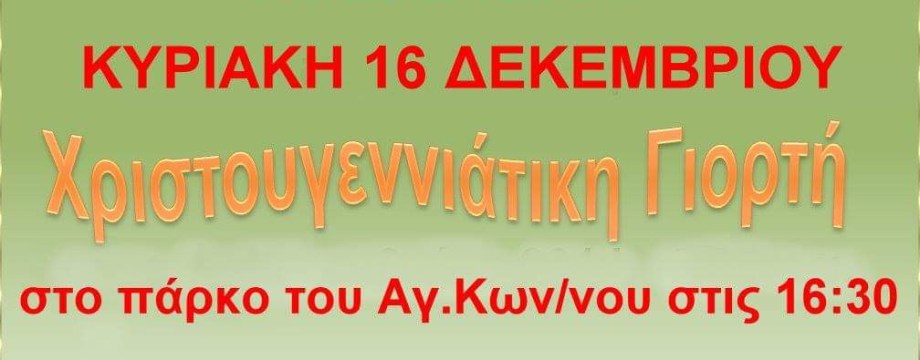 Την Κυριακή που μας έρχεται, 16 Δεκεμβρίου, θα βρεθούμε στην Χριστουγεννιάτικη γιορτή του Πολιτιστικού Συλλόγου Αγίου Κωνσταντίνου «Ο δρόμος του νερού».