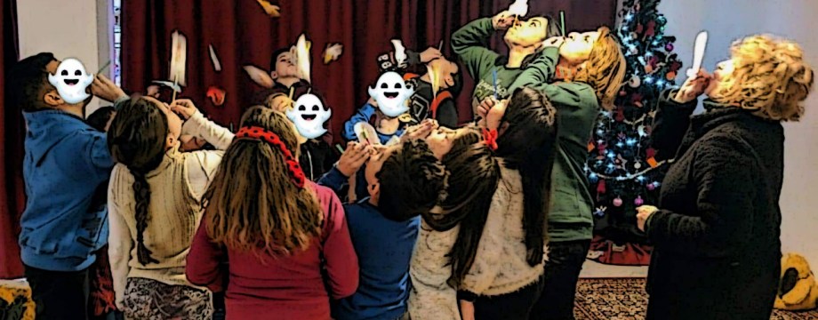 Κυριακή λίγο πριν τις έντεκα το πρωί και το παραμυθόσπιτο άρχισε να γεμίζει με παιδικές φωνούλες από τα παιδάκια που ήρθαν να μιλήσουμε για τα φαντάσματα. Η αποστολή μας ήταν να νικήσουμε τη φοβία μας γι’ αυτά, στο πλαίσιο των εκδηλώσεων που πραγματοποιούμε στο παραμυθόσπιτό μας κάθε πρώτη Κυριακή του μήνα. Είχαμε ήδη μιλήσει για το σκοτάδι και για τα καιρικά φαινόμενα στις προηγούμενες συναντήσεις. Τώρα σειρά είχε η πάλη με τα φαντάσματα. Γιατί μας φοβίζουν; Πώς γεννιέται ο φόβος μας γι’ αυτά και είναι δικαιολογημένος άραγε; Τι ακριβώς μας φοβίζει;