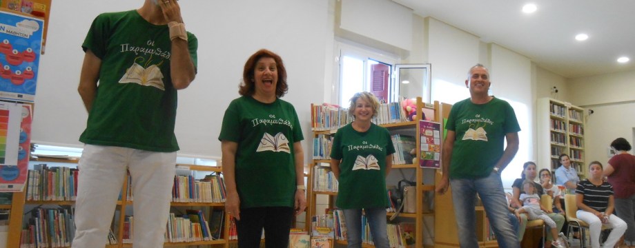 Στη συντροφιά μας θα είναι η Ομάδα Μελέτης, Διατήρησης και Διάδοσης του Λαϊκού Παραμυθιού και Παιχνιδιού «Οι Παραμυθάδες». Οι Παραμυθάδες, που πάντα ανταποκρίνονται με αγάπη και ανιδιοτέλεια στις προσκλήσεις της Βιβλιοθήκης, θα μας αφηγηθούν ιστορίες παλιές, για να θυμούνται οι μεγάλοι και να μαθαίνουν οι μικροί!»