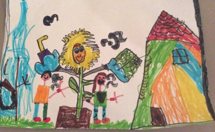 Αρχικά κατάλαβαν τι λουλούδι ήταν! Είχε ψηλό κορμό, περίπου στα δύο μέτρα, είχε δύο χεράκια για να χαιρετάει και ένα στοματάκι για να χαμογελάει και να λέει «ΚΙ-ΚΙ-ΡΙΚΟΥ»!