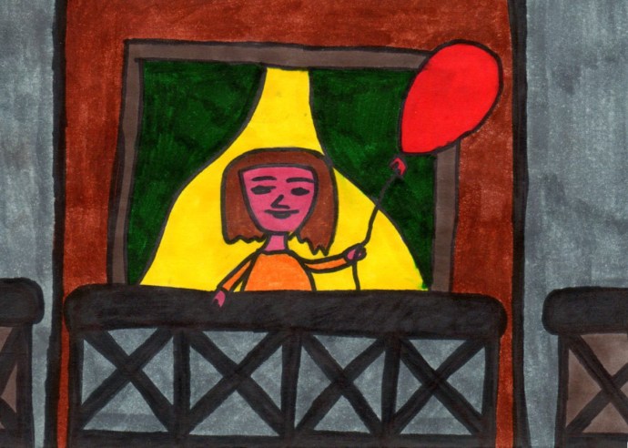 Η Ελπίδα ένα πρωί, σκαλίζοντας τα συρτάρια του γραφείου της, ανακάλυψε μερικά μπαλόνια. Φούσκωσε ένα μεγάλο κόκκινο που βρήκε, το έδεσε με μια κλωστή και το κρέμασε έξω από τα κάγκελα του μπαλκονιού.