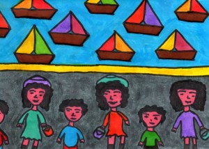 Σιγά σιγά, άρχισαν να βγαίνουν στα μπαλκόνια και κάποιοι μεγάλοι. Δε μπορούσαν να το πιστέψουν, αυτό που συνέβαινε. «Πώς δε το σκέφτηκε αυτό κανείς ως τώρα;» αναρωτιόντουσαν. Οι πιο πολλοί κρατούσαν στα χέρια τους κινητά τηλέφωνα. Έβγαζαν φωτογραφίες και τις έστελναν στους φίλους τους. Μερικοί προσπαθούσαν να μουρμουρήσουν κάποια προσευχή μαζί με τα παιδιά τους. Δεν το είχαν ξανακάνει και τους φαινόταν πολύ δύσκολο.