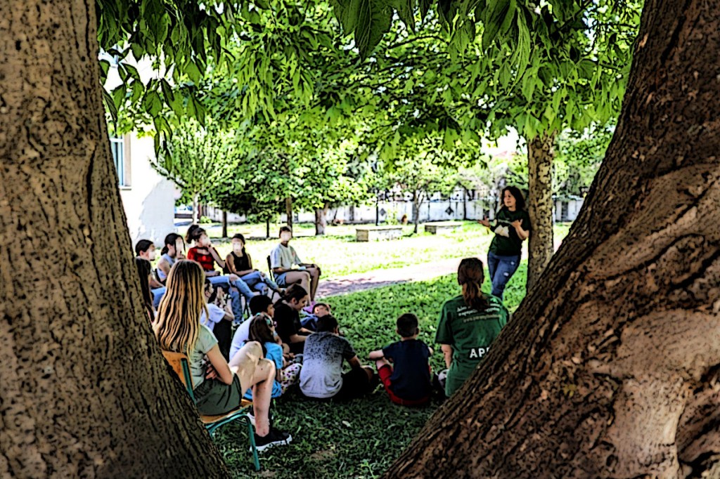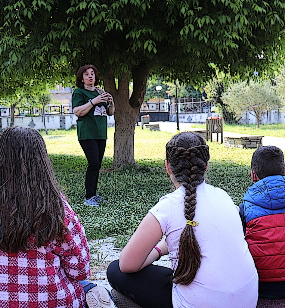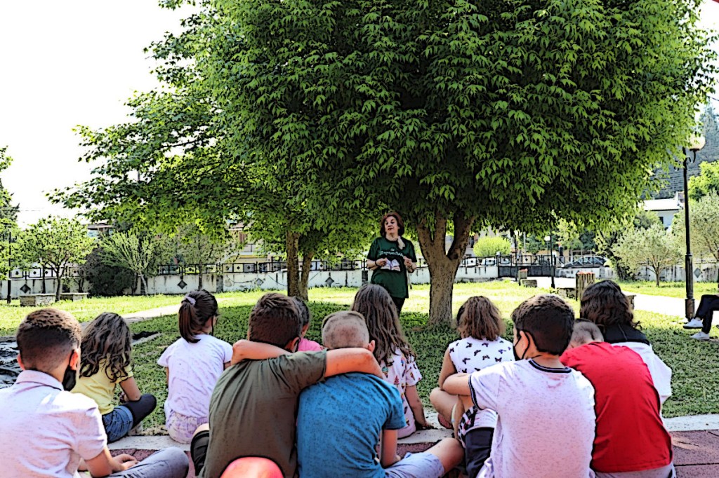 Η παρέα της Ε’ και ΣΤ’ τάξης επέλεξε να καθίσουμε στον ίσκιο ενός μεγάλου δέντρου. Άλλα παιδιά στρώθηκαν στο γρασίδι, άλλα έφεραν τα καρεκλάκια τους και ένα ημικύκλιο από ζεστά χαμόγελα δημιουργήθηκε. Οι αφηγήσεις των παραμυθιών ξεκίνησαν και τα παιδιά απορροφήθηκαν. Γεγονός που μας ξάφνιασε ευχάριστα γιατί συνήθως σε αυτές τις ηλικίες, μεταξύ παιδικότητας και εφηβείας τα παιδιά αποστασιοποιούνται, θεωρώντας ότι πλέον είναι πολύ μεγάλα για να ακούνε παραμύθια. Κι όμως αυτά ζητούσαν κι άλλο παραμύθι…κι άλλο….κι άλλο!