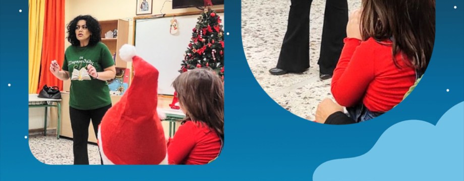 Στη συνέχεια, τα αστεράκια του 11ου Δημοτικού Σχολείου απάντησαν πολύ γρήγορα και ολόσωστα στους γρίφους και τα αινίγματα που τους είπαμε και έκαναν παραμυθογυμναστική, ανεβοκατεβαίνοντας σαν ξωτικά ή τάρανδοι. Τέλος, τραγούδησαμε όλοι μαζί μας παραδοσιακά κάλαντα και ανταλλάξαμε ευχές για Καλά Χριστούγεννα με υγεία και χαμόγελα!