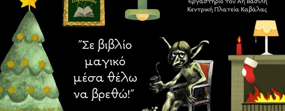 Την Παρασκευή 13 Δεκεμβρίου 2024 και ώρα 18:00-20:00, στο Εργαστήριο του Άη Βασίλη (στην Κεντρική Πλατεία Καβάλας), θα μπούμε κυριολεκτικά μέσα στο βιβλίο για να συναντήσουμε αυτά τα απίθανα, σκανταλιάρικα πλασματάκια, τα καλικαντζαράκια!