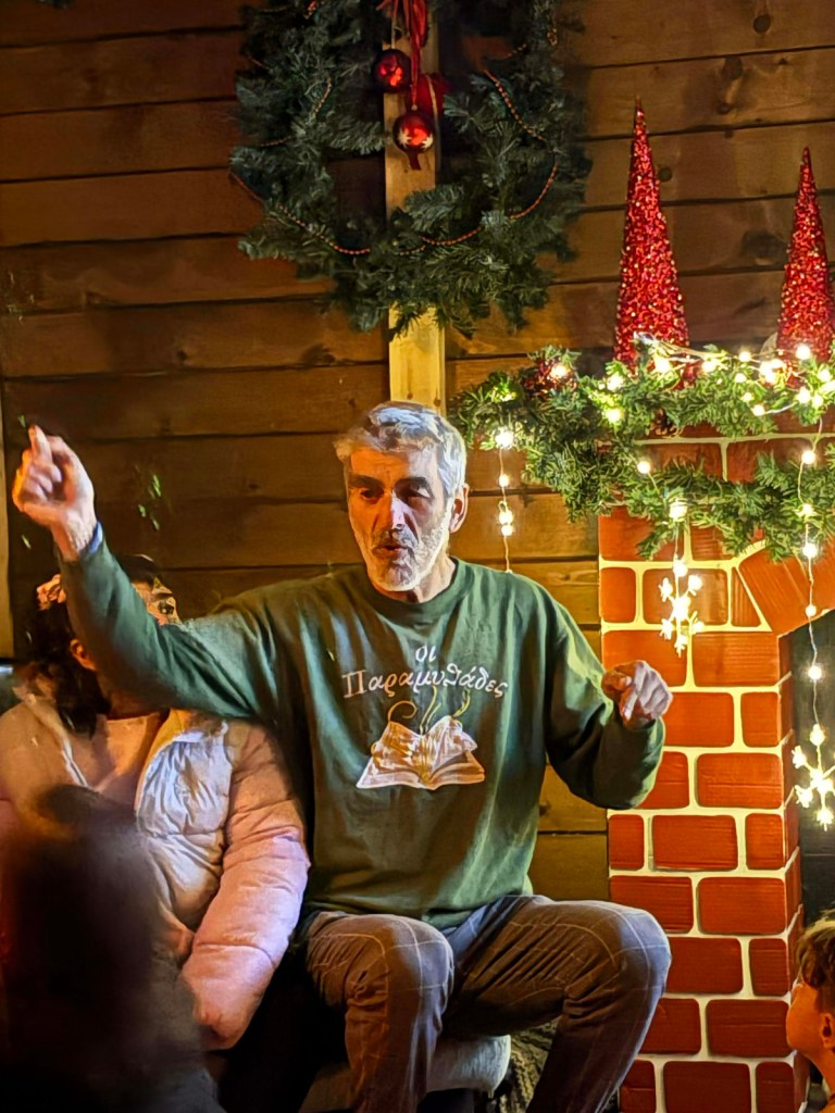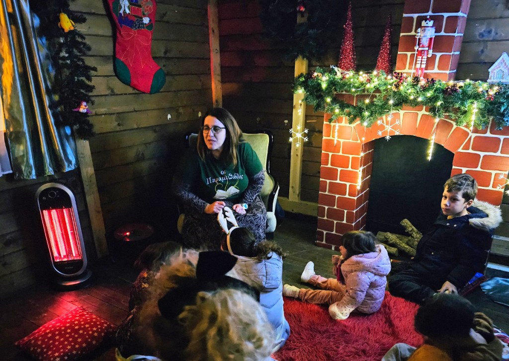 Την Τρίτη 16 Δεκεμβρίου, ζήσαμε ένα παραμυθένιο απόγευμα στο σπιτάκι του Αη Βασίλη, στον δημοτικό κήπο Καβάλας, την καινούργια του τοποθεσία. Όλο το περιβάλλον, εξωτερικά και εσωτερικά, ήταν ιδανικό για να διηγηθούμε, κάτω από φως μικρών αστεριών και μόνο, τα χριστουγεννιάτικα παραμύθια μας!