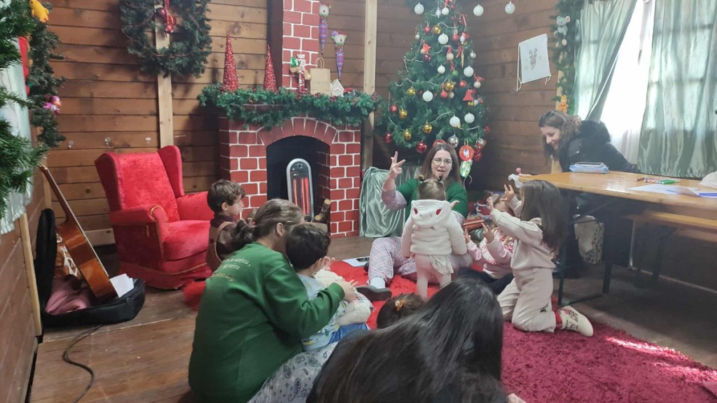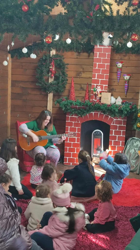 Ανάμεσα στις ιστορίες, οι φωνές ενώθηκαν στα κάλαντα και ο χώρος γέμισε ήχους γνώριμους, παλιούς, σαν να τους ψιθύριζαν τα ίδια τα αστέρια.