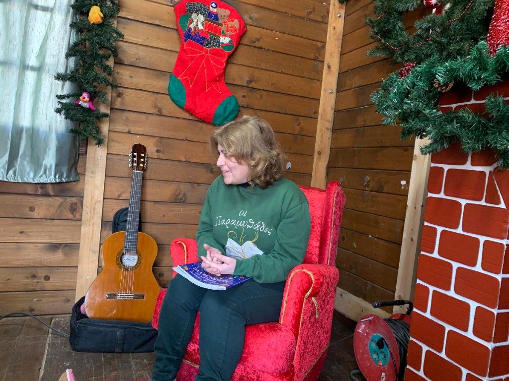 Εκεί, ανάμεσα σε αστεράκια, γέλια και μυρωδιά Χριστουγέννων, η Ομάδα Μελέτης, Διατήρησης και Διάδοσης του Λαϊκού Παραμυθιού και Παιχνιδιού «Οι Παραμυθάδες» άπλωσε το αόρατο χαλί της αφήγησης.