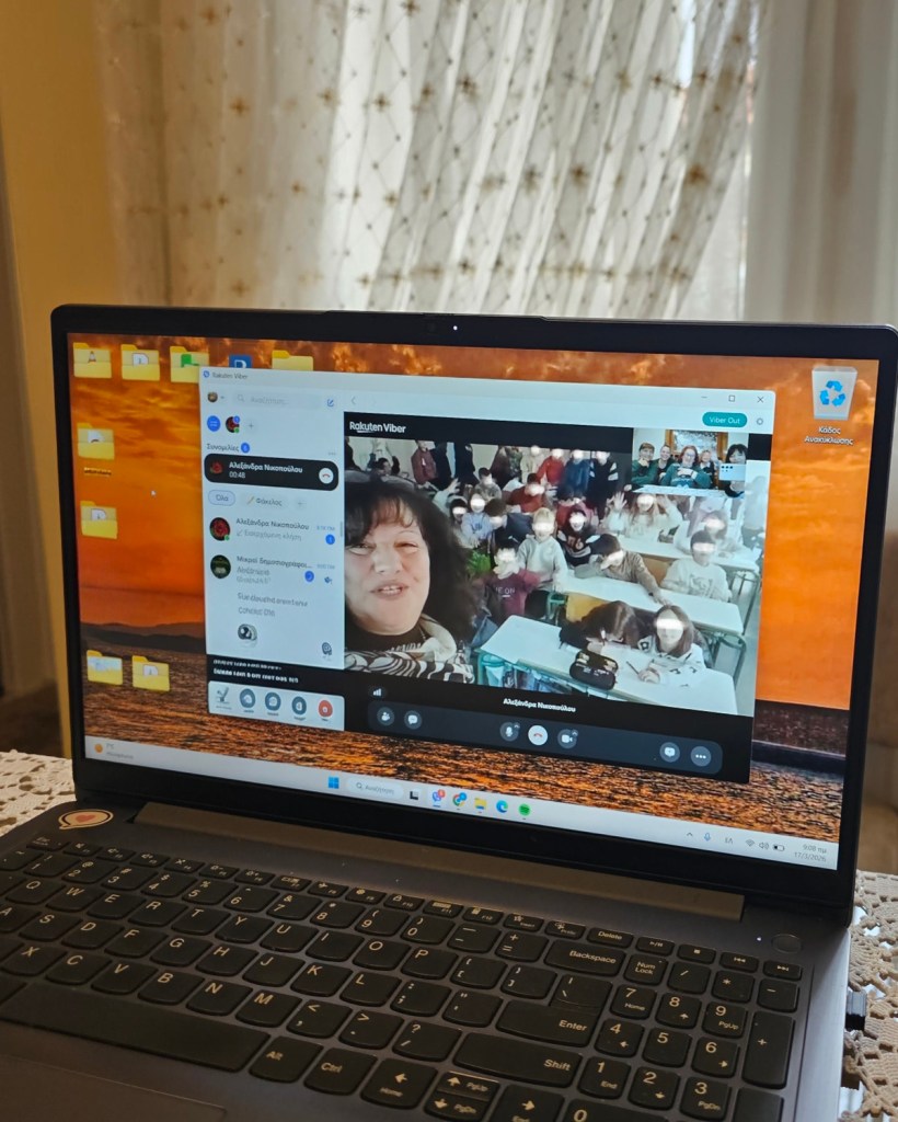 Μην τα πολυλογώ, επιμείναμε κι έπειτα από αρκετές προσπάθειες καταφέραμε να συνδεθούμε. Η συνάντησή μας, ξεκίνησε με το καλωσόρισμα από την διεύθυνση των σχολείων που μας ευχαρίστησαν για αυτήν την όμορφη συνεργασία. Αρχίσαμε λοιπόν, με μια παρουσίαση του Αισώπου, του μεγάλου αυτού μυθοποιού, από την δική μας παραμυθού Αδελαΐδα.