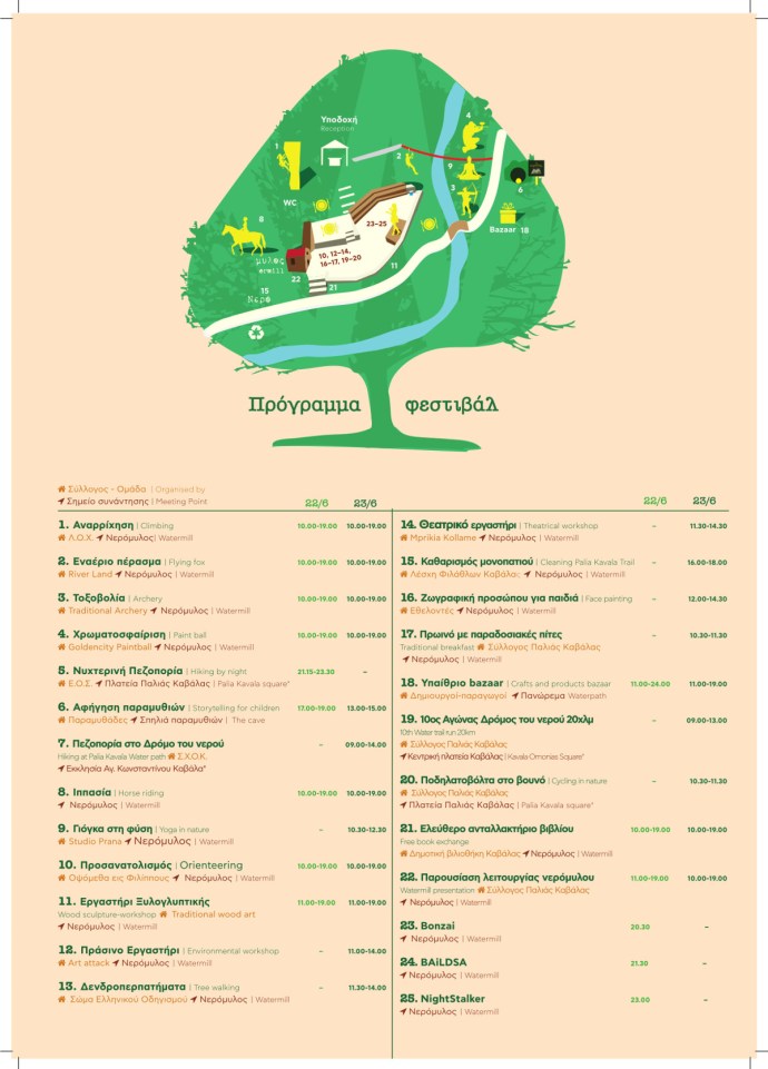 Για άλλη μια χρονιά, -η έβδομη ή όγδοη στην σειρά- θα βρεθούμε στο περιβαλλοντικό μονοπάτι της Παλιάς Καβάλας, εκεί που χτυπάει η καρδιά ενός θεσμού πλέον. Το Wood Water Wild Festival, αυτή η εναλλακτική γιορτή που διοργανώνεται από τον Πολιτιστικό Σύλλογο της Παλιάς Καβάλας και στην οποία συμμετέχουν πολλοί άλλοι σύλλογοι και φορείς.