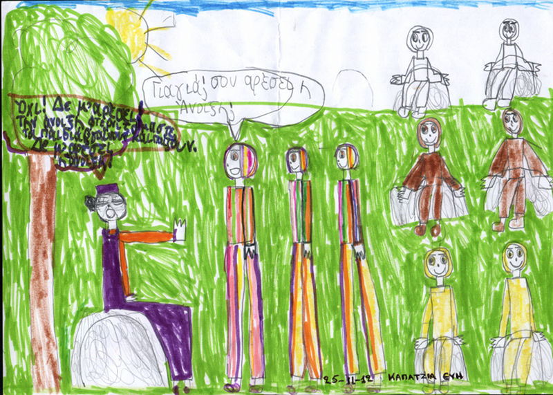 Ζωγραφιά της Εύης Καπατζιά, εμπνευσμένη από το παραμύθι της προφορικής παράδοσης «Οι 12 μήνες»