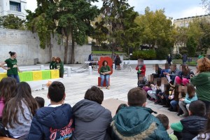 Αχ παιδιά… τί μαγεία ακολούθησε! Μικρές-μικρές φωτίτσες άρχισαν να πετάγονται από το πρόσωπό του, από το σώμα του. Φωτίτσες που σπάσανε τα δεσμά των αλυσίδων κι ο Ήλιος άρχισε να υψώνεται σιγά-σιγά μέχρι που γκρέμισε το ταβάνι και συνέχιζε για τον Ουρανό.