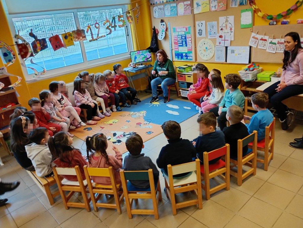 H Ομάδα Μελέτης Διατήρησης και Διάδοσης του Λαϊκού Παραμυθιού και Παιχνιδιού «Οι Παραμυθάδες», προσκεκλημένοι από το 1ο Νηπιαγωγείο Αμυγδαλεώνα, βρεθήκαμε στη αίθουσα του σχολείου τους την Πέμπτη 23 Φεβρουαρίου 2023, όπου μας υποδέχθηκαν με ιδιαίτερη χαρά, οι μικροί μας φίλοι, μαζί με τις δασκάλες τους.