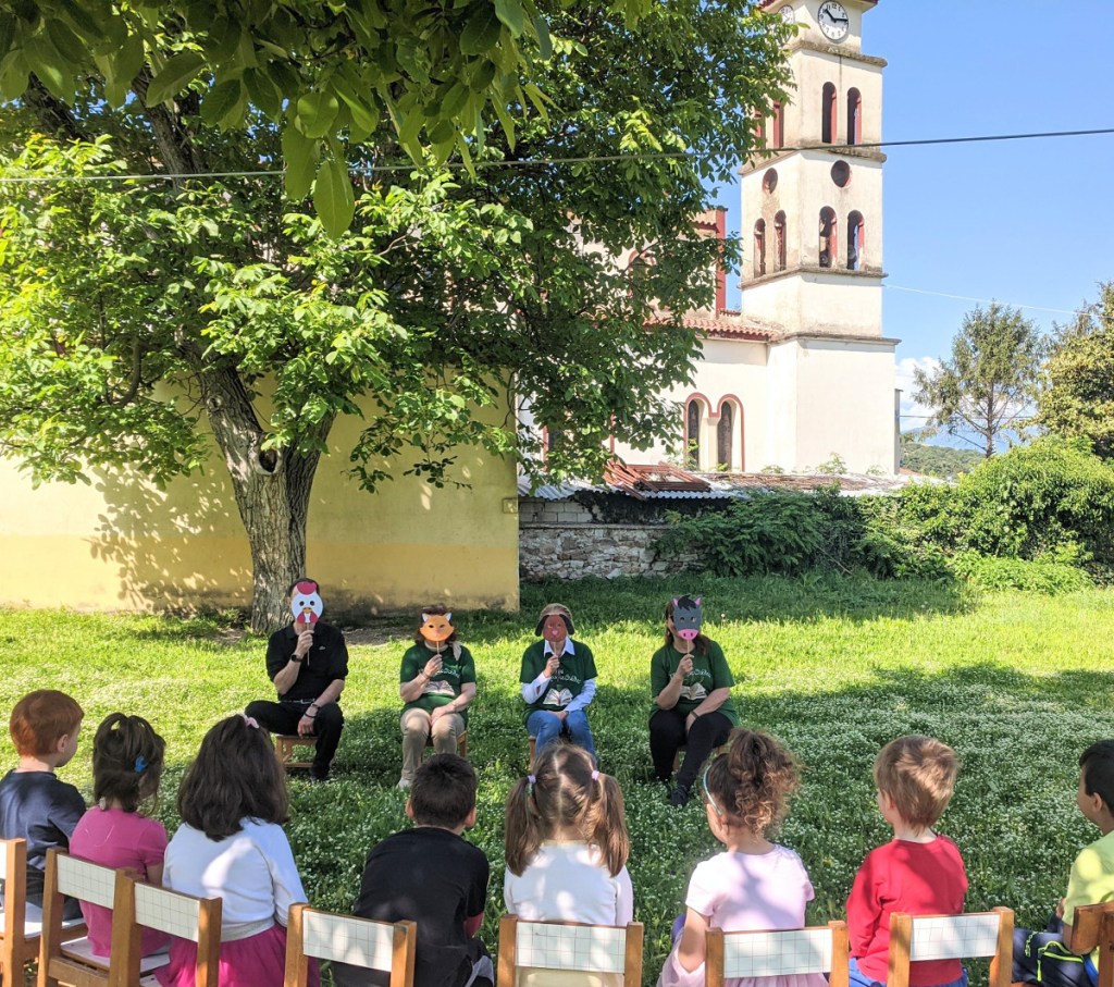 Ο γάιδαρος, ο σκύλος, η γάτα και ο κόκορας ζωντάνεψαν στην υπέροχη αυλή του σχολείου μέσα στο πράσινο και τα ευωδιαστά λουλούδια και έστειλαν στο μήνυμα ότι οι φίλοι στηρίζουν, πιστεύουν και αγαπάνε χωρίς δεύτερες σκέψεις. Ο Αίσωπος συμπλήρωσε το αφιέρωμα μας με τον μύθο του «Οι δύο φίλοι και η αρκούδα» ενώ δεν έλειψαν τα τραγούδια και τα αινίγματα που ξεσήκωσαν τους φίλους μας.