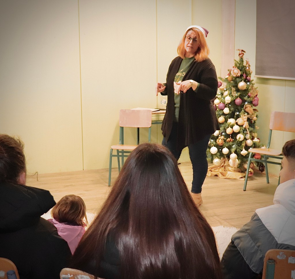 Ο χώρος διαμορφώθηκε γρήγορα, οι μικρότεροι στρώθηκαν στην άσπρη βελέντζα, τα μεγαλύτερα παιδιά στα καρεκλάκια και κάποιοι από τους γονείς κούρνιασαν στις γύρω πολυθρόνες. Ε, Χριστούγεννα βλέπεις και στις καρδιές φωλιάζει η ξεχασμένη παιδική ψυχή.