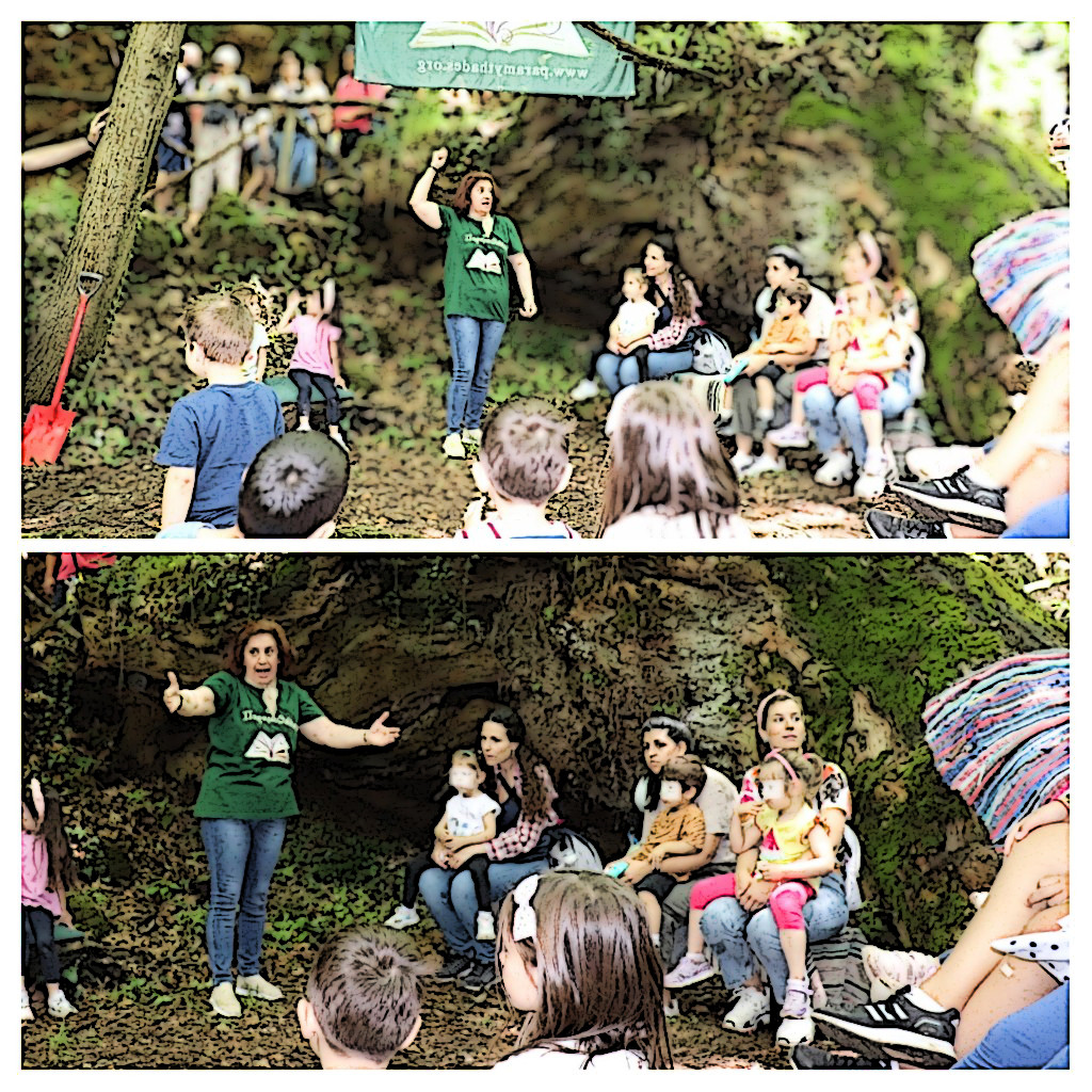 Λίγο πιο πάνω απο το Νερόμυλο, στην σπηλιά των παραμυθιών, συναντηθήκαμε με τους μικρούς αλλά και με τους μεγάλους φίλους μας. Με φόντο τα ψηλά δέντρα που κούρνιαζαν προστατευτικά απο πάνω μας, το μικρό ποταμάκι να μας συντροφεύει και το πράσινο να δεσπόζει παντού, ξεκίνησε το διήμερο ταξίδι μας. Ταξιδέψαμε όλοι μαζί σε μακρινές πολιτείες όπου βασιλιάδες, πριγκίπισσες, δράκοι, ζώα, νεράιδες και άλλοι πολλοί ήρωες μας «αφηγήθηκαν» τις ιστορίες τους. Οι περιπέτειές τους πολλές και συναρπαστικές. Οι μικροί μας φίλοι δεν ήταν μόνο ακροατές των παραμυθιών αλλά συμμετείχαν στην αφήγηση με το δικό τους μοναδικό τρόπο.