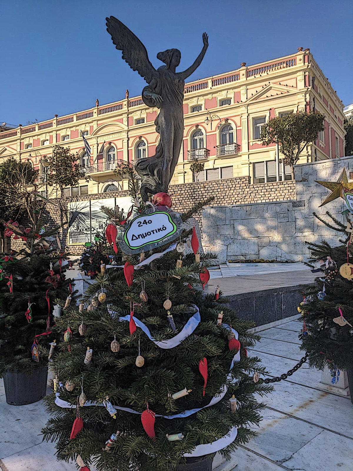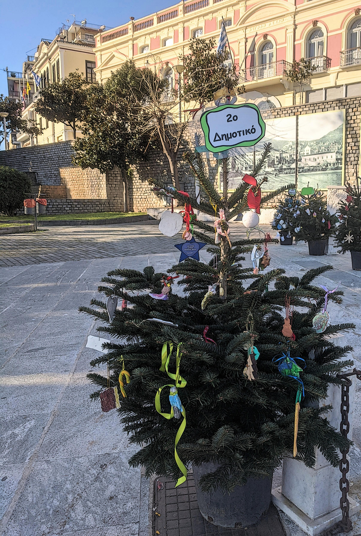 Μαθητές, δάσκαλοι και γονείς ενώσαν τις δυνάμεις και στόλισαν το δέντρο τους όσο πιο ευφάνταστα μπορούσαν. Όταν τελείωσαν, η φιλαρμονική του δήμου Καβάλας, πλημμύρισε τα κρυφά μονοπάτια του δάσους μας με χριστουγεννιάτικες μελωδίες, ενώ όλοι μαζί ρίξαμε την αυλαία τραγουδώντας τα χριστουγεννιάτικα κάλαντα.