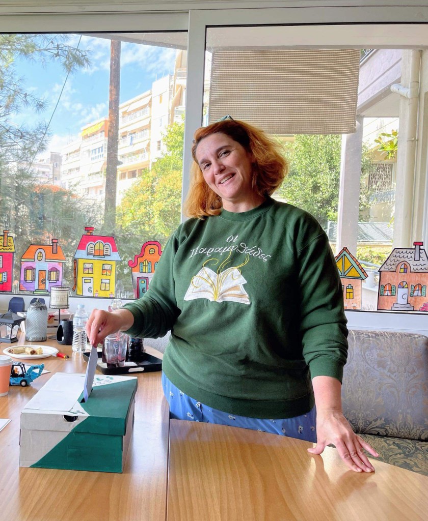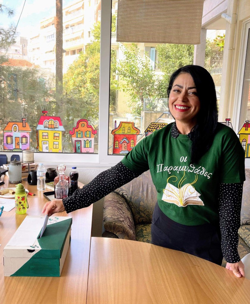 Λοιπόν, θα πάμε και στην κύρια Κατερίνα, την κυρία που αγαπάει τα βιβλία. Σίγουρα θα θέλει να είναι κοντά μας σε αυτό το σχέδιο,