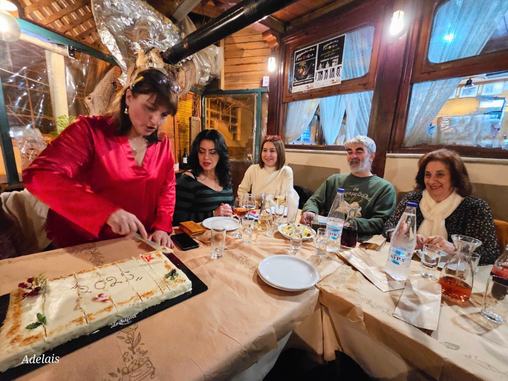 Ήταν μια φορά ένα ήσυχο ταβερνάκι με λίγους ήσυχους θαμώνες και ήρεμη ατμόσφαιρα! Έλα όμως που οι παραμυθάδες είχαμε την φαεινή ιδέα να κόψουμε την βασιλόπιτα μας εκεί! Και αρχίσαμε να μαζευόμαστε και να γίνεται ένας χαμός από γέλια, φωνές, φασαρία! Τα τραπέζια ταξίδευαν δεξιά, αριστερά και πάλι πίσω! Οι καρέκλες κι αυτές το ίδιο, ώσπου επιτέλους καθίσαμε και άρχισαν να έρχονται τα φαγητά και τα κρασιά! Το μόνο που ακουγόταν τώρα ήταν τα γέλια μας και οι ευχές από το τσούγκρισμα των ποτηριών.